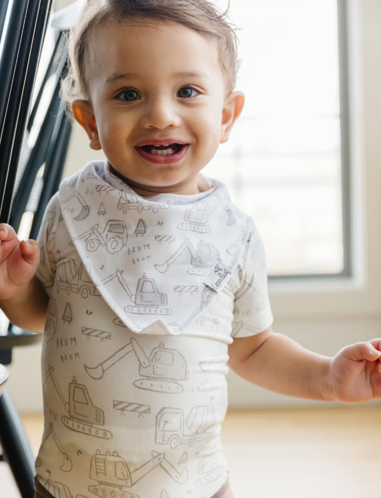 These premium bibs are made of 100% absorbent cotton on the front and 100% polyester fleece on the back. The front of the baby bib is a stylish knit fabric and the back is a super soft fleece that keeps your baby completely dry even with the drooliest of babies. Great for teething babies! Adjustable nickel-free snaps for ages 3-36 months fits newborns to toddlers, Choose from dozens of unique designs and fashion-forward colors. These bibs are the perfect finishing touch for any outfit. Create the perfect baby gift with a coordinating burp cloth (or two!) To care for your bib, machine wash in cold water. For best results, lay flat to dry or tumble dry in low heat. Iron on a medium setting to remove any wrinkles.