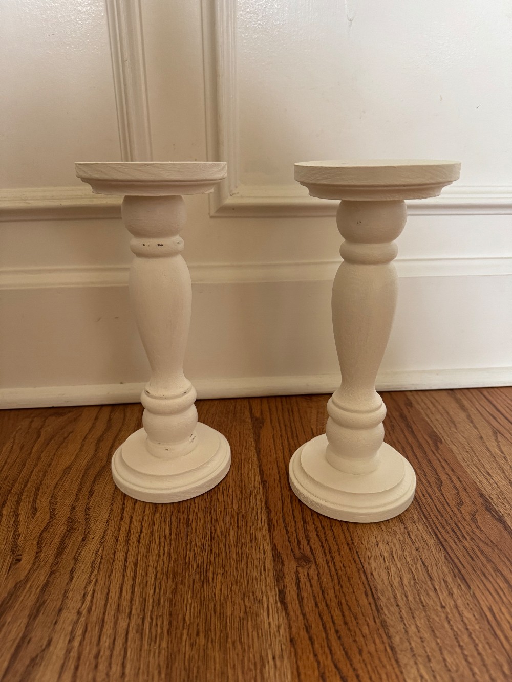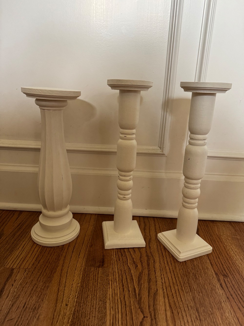 Wood candlesticks crafted from architectural salvage. Various sizes and styles.