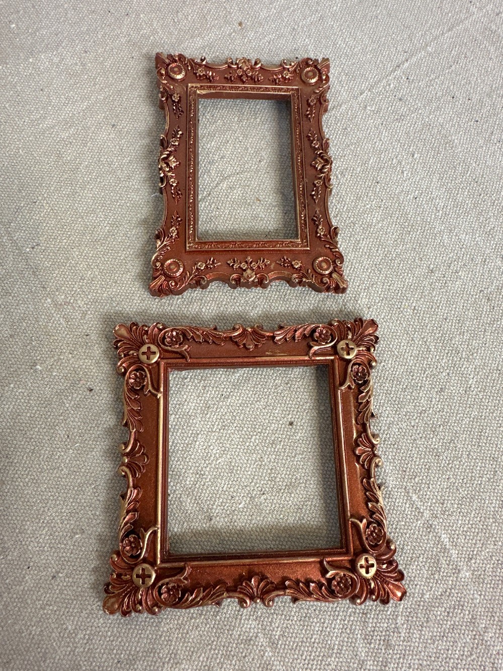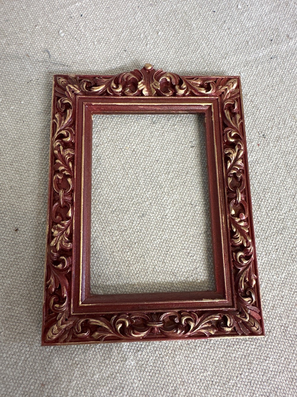 Total size 4” x 5”Opening size 2.25” x 3.5”Hand painted resin magnet frame