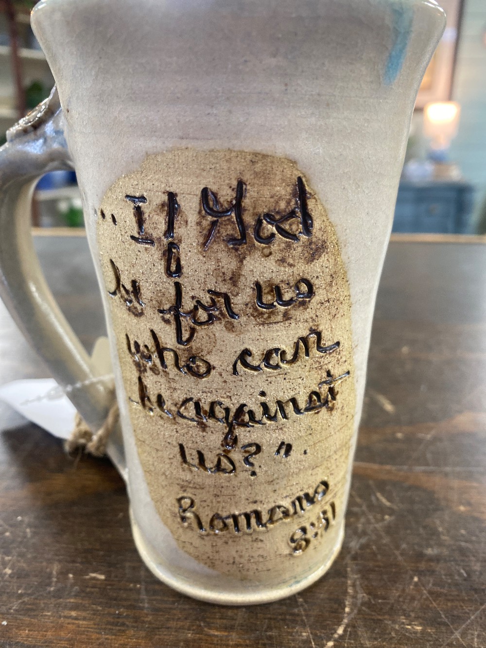 Home / DISHWARE / Handcrafted Pottery Mug - ROMANS 8:31