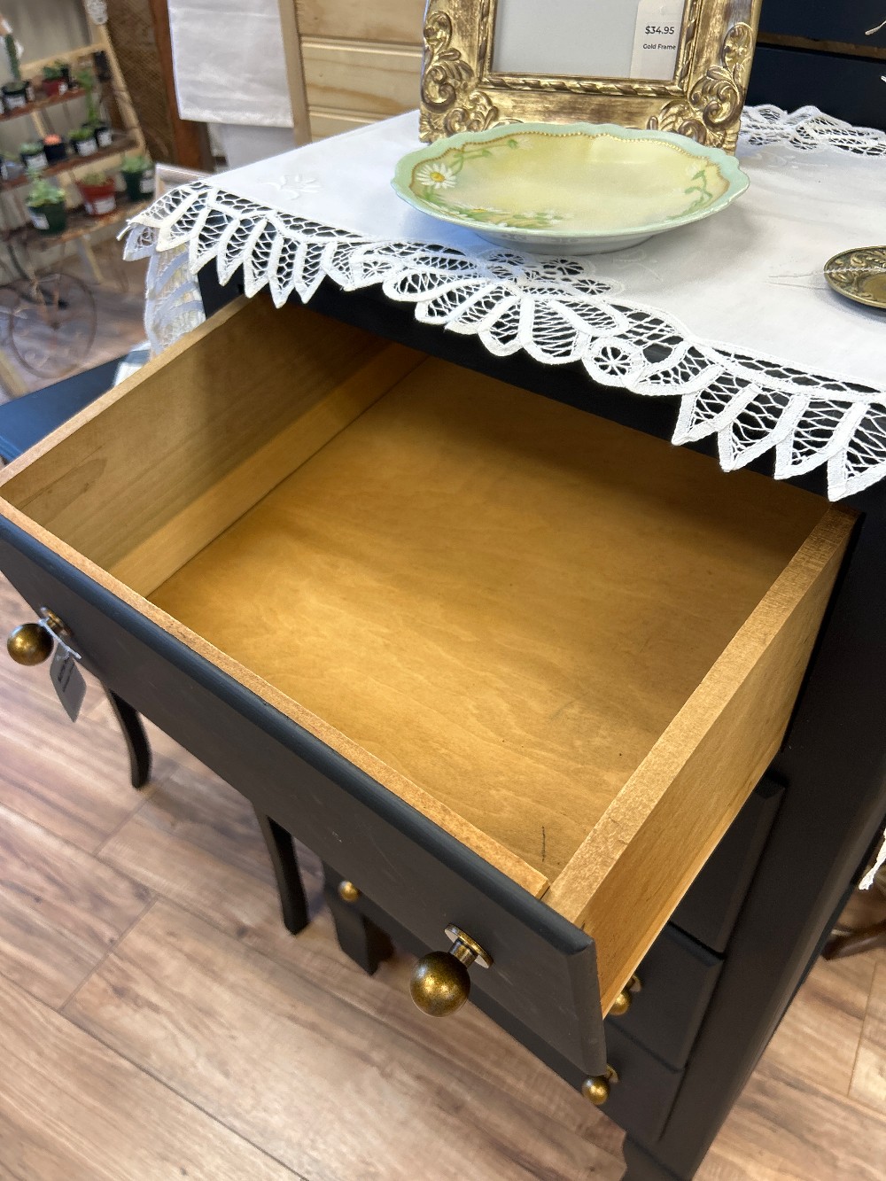 Vintage Chest with Mirror. Painted with General Finishes ‘Lamp Black’