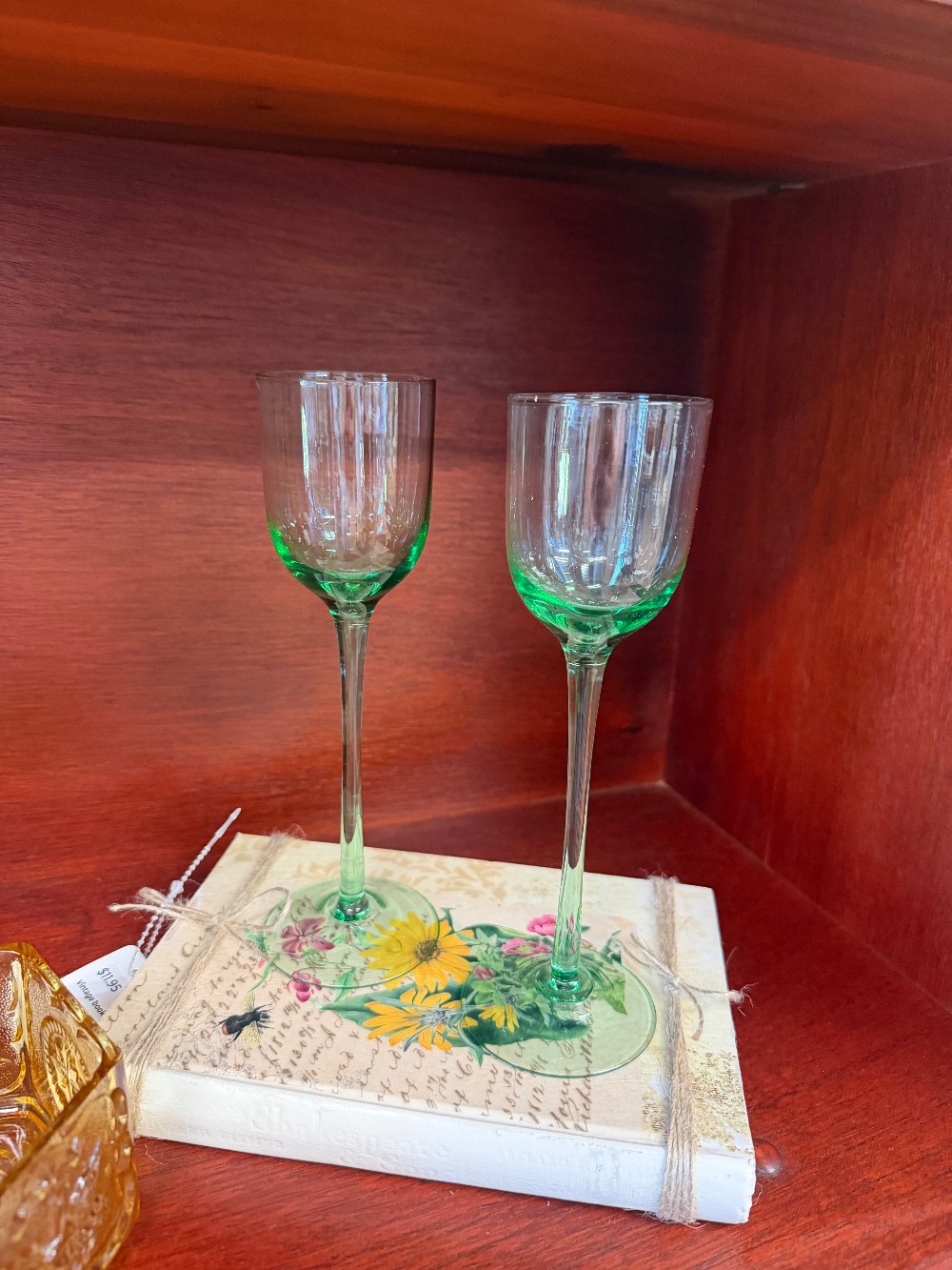 Tall Stemmed Cordial - Set of 2(Green or Amber)