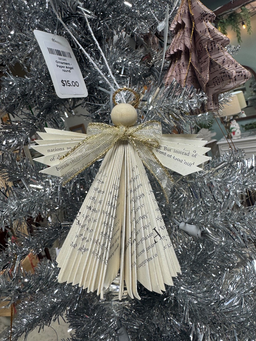 Angel Christmas ornament made from book pages.