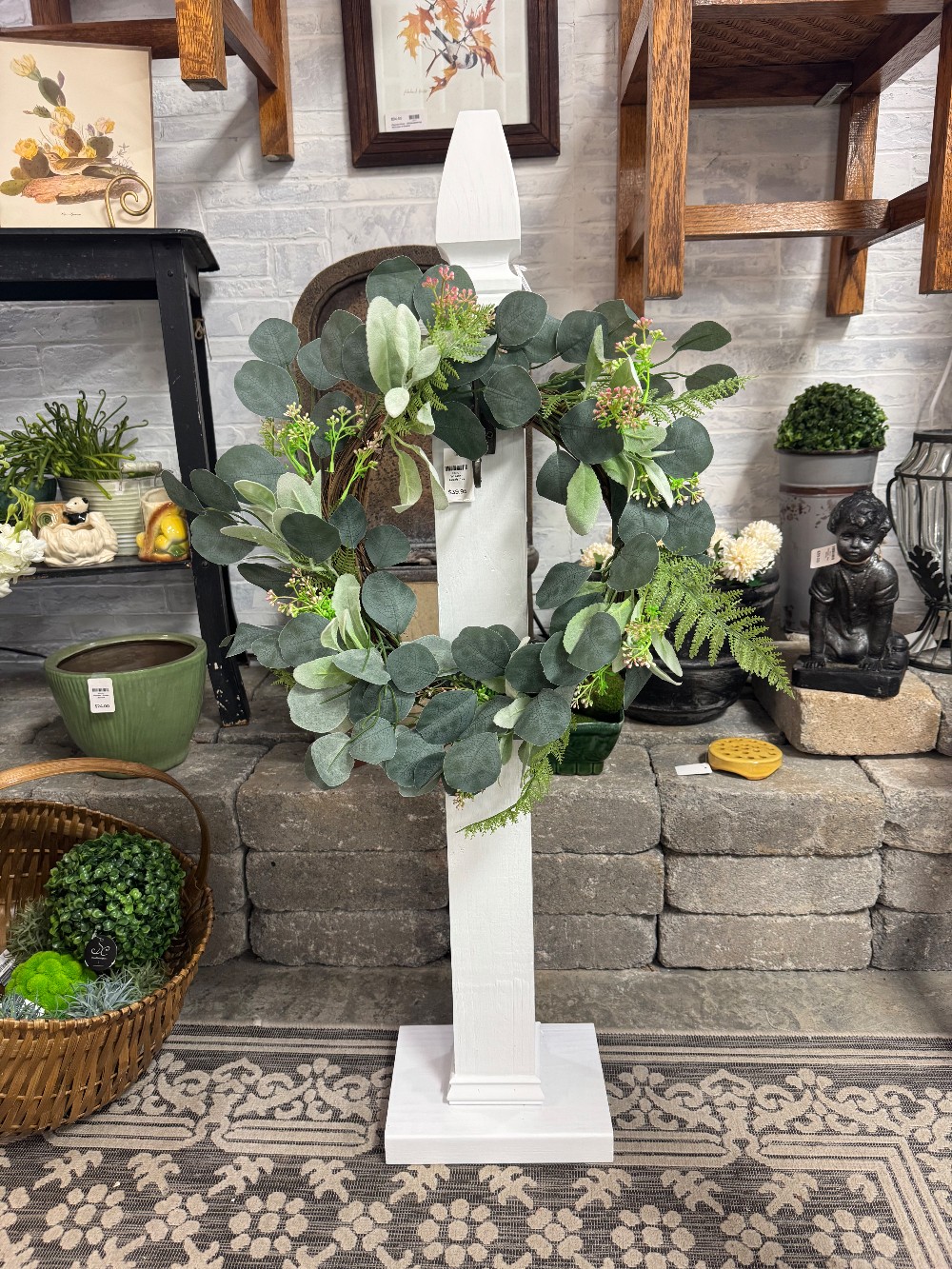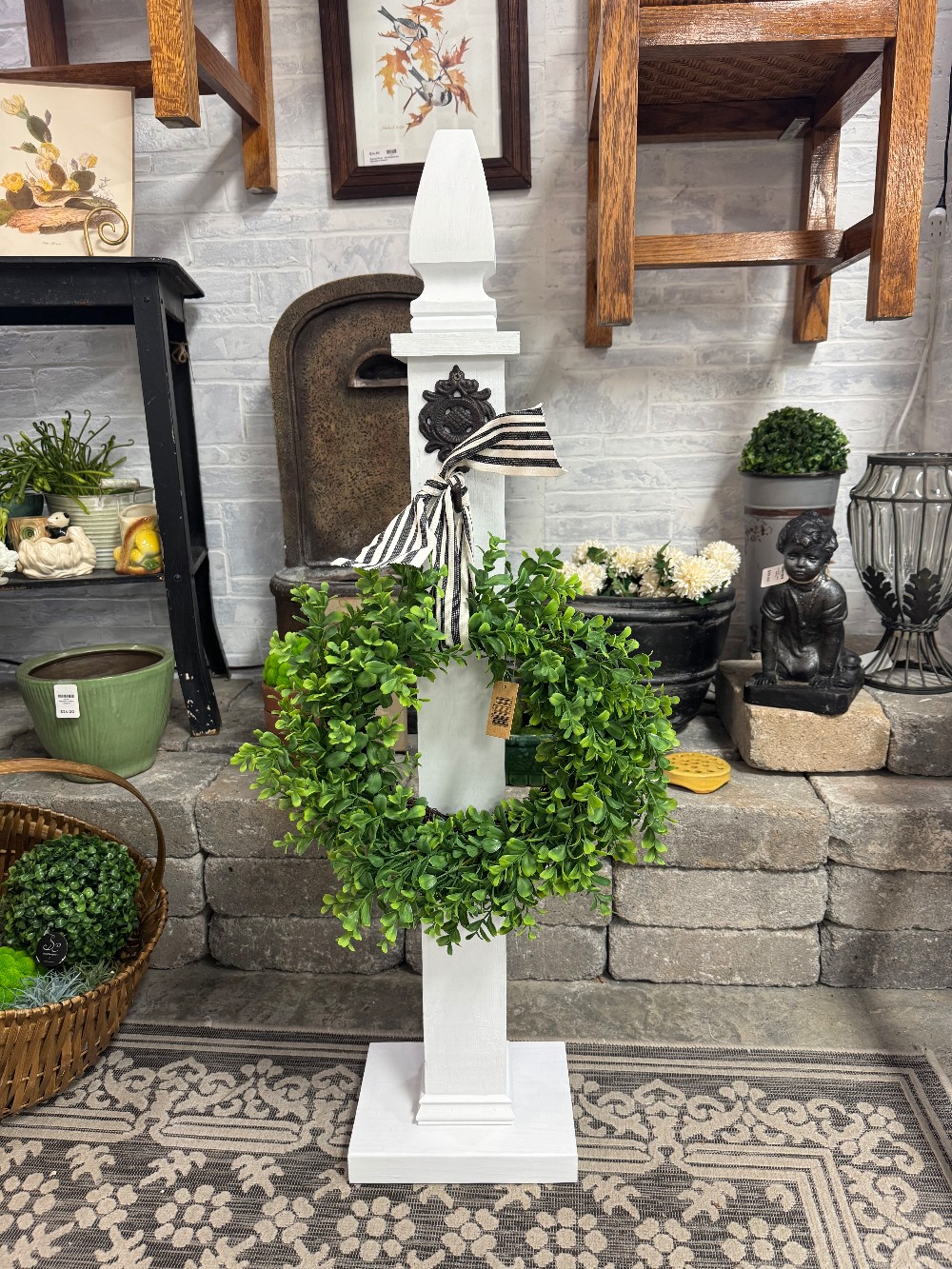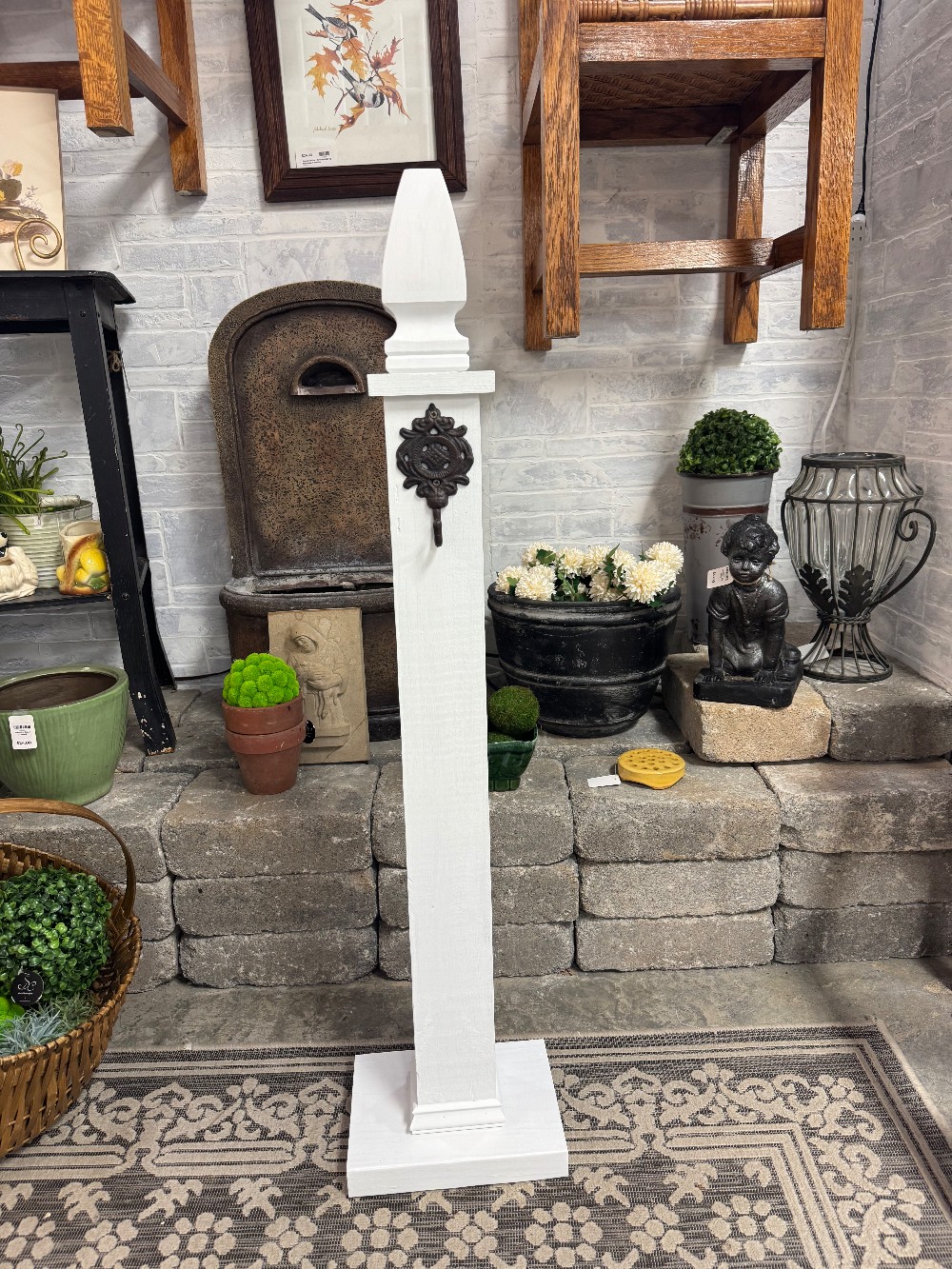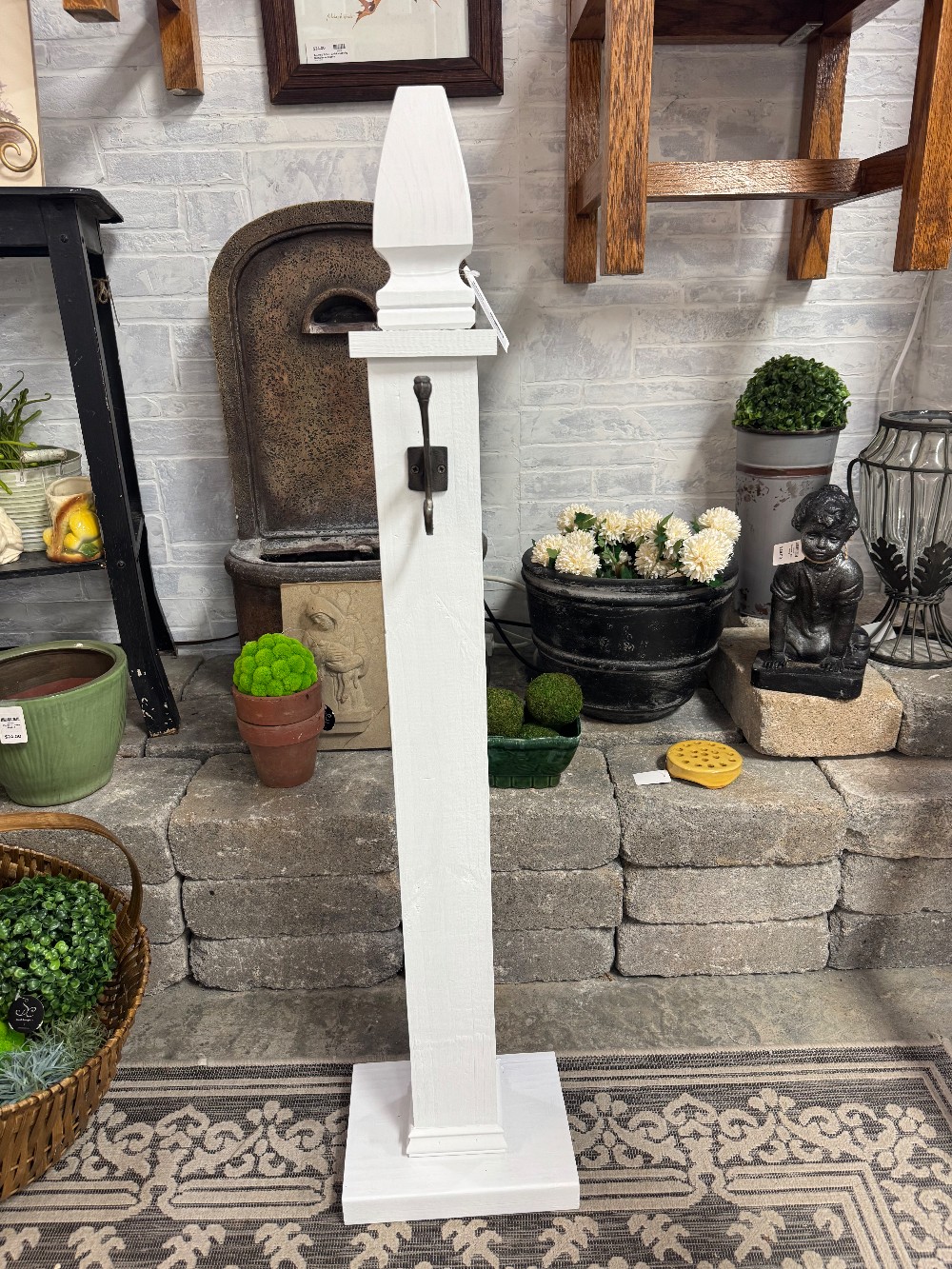 Locally made post for indoor or outdoor use. Great for displaying a wreath or sign. Made from solid wood, painted with exterior paint.