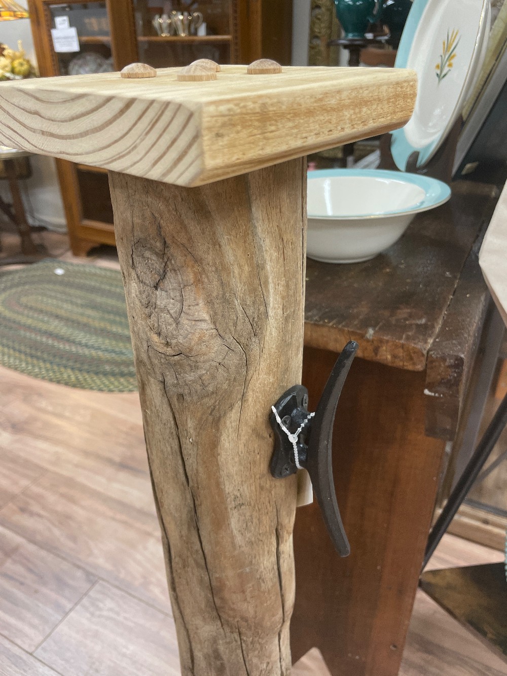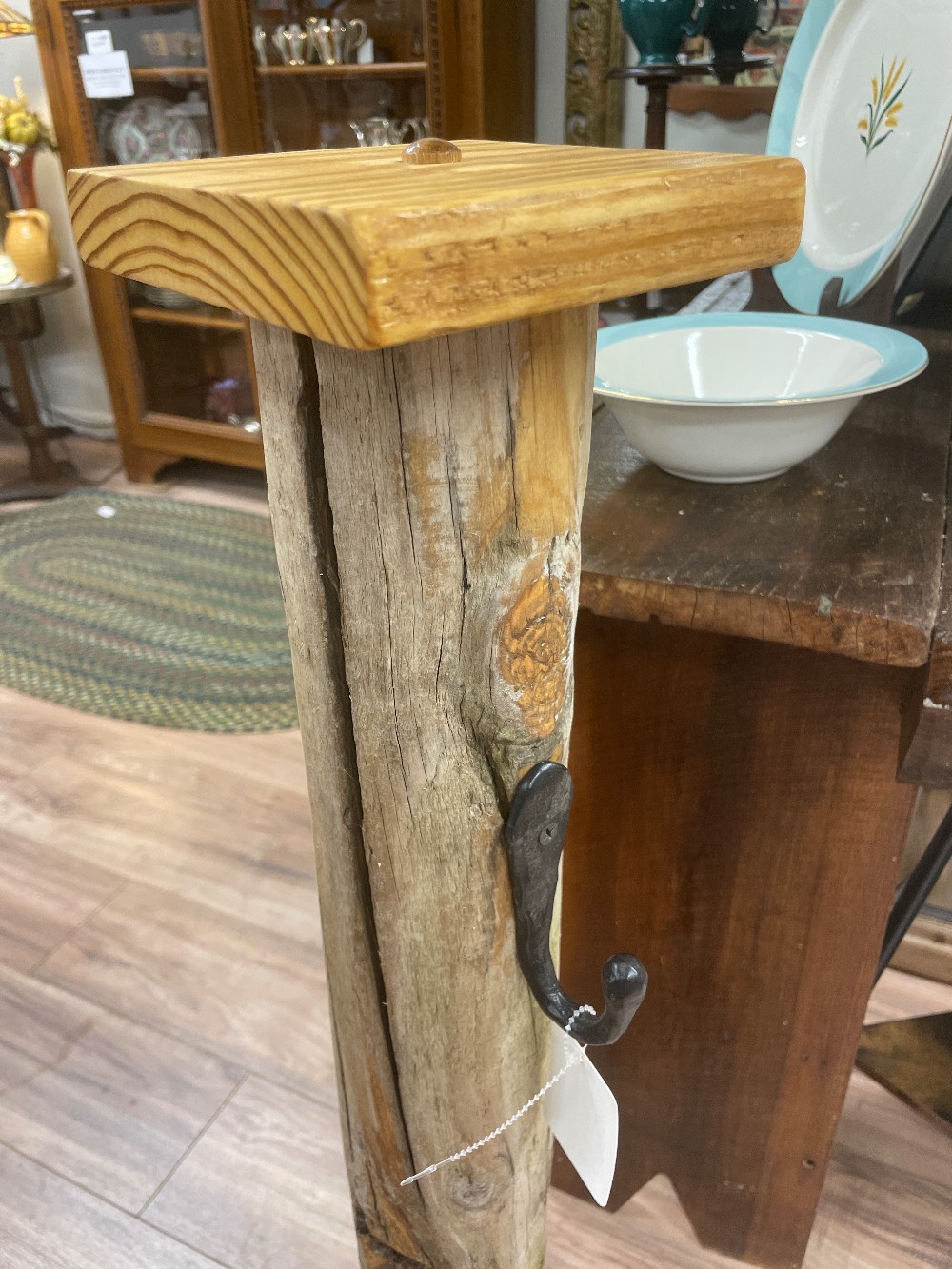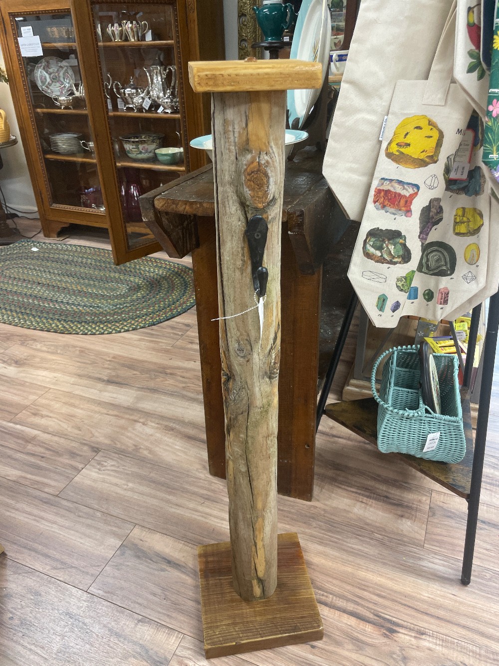 Handmade driftwood stand with hook.
