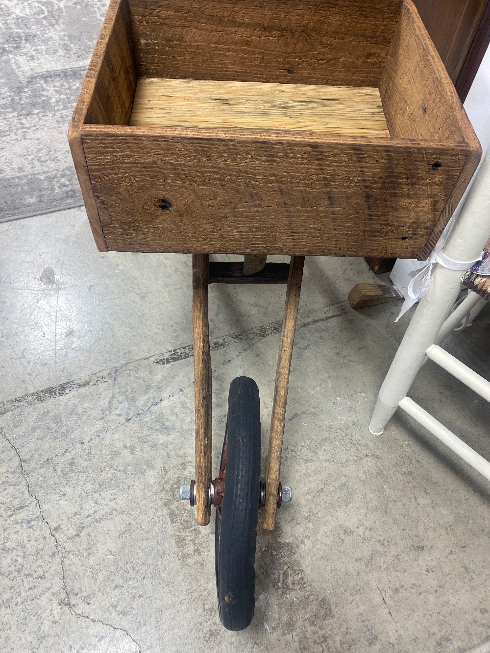 . Repurposed Tobacco Sticks and an old Bicycle Wheel make up this 46" x 24" Vintage Garden Planter