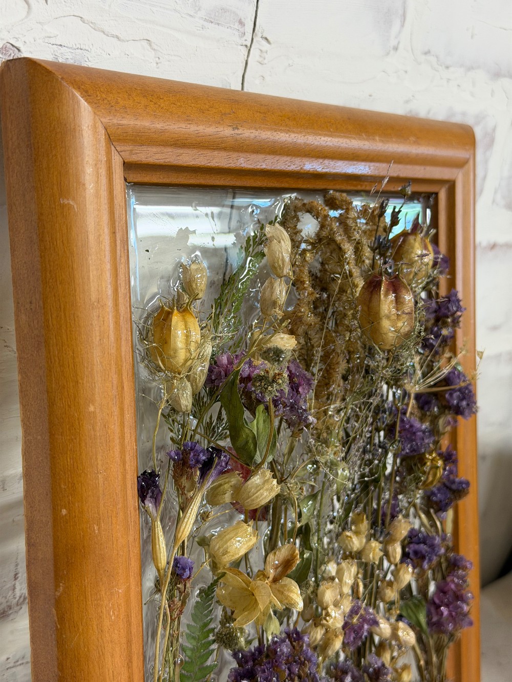 8” x 10” wood picture frame with local grown and dried flowers all sealed in resin.