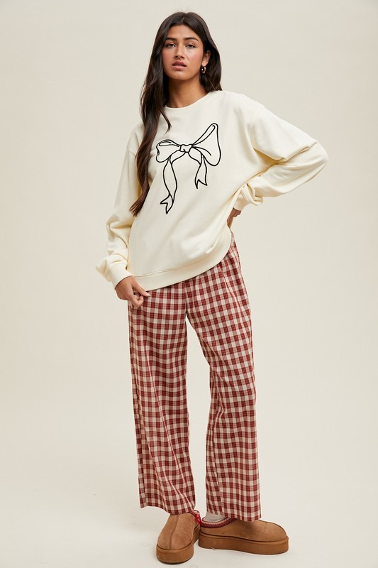 Effortlessly chic and endlessly comfortable, the Bow French Terry Pullover is your go-to for casual sophistication. Crafted from a soft blend of 82% cotton and 18% polyester, this cozy layer offers a perfect balance of breathability and stretch. Model is wearing a small.