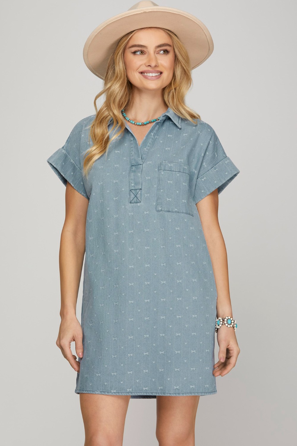 Sweet, stylish, and full of charm—this washed denim shift dress is all about the bows! Featuring adorable bow details that add the perfect feminine touch, this dress combines playful style with everyday comfort. The relaxed shift silhouette makes it easy to wear, while the soft washed denim gives it a laid-back, lived-in feel. Finished with convenient pockets, it’s the perfect throw-on piece for casual days, brunch dates, or weekend outings.
