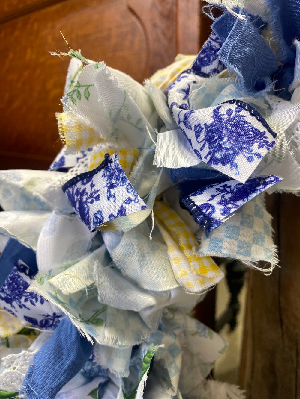 Home / WREATHS & CANDLE RINGS / Rag Wreath - Blue & White